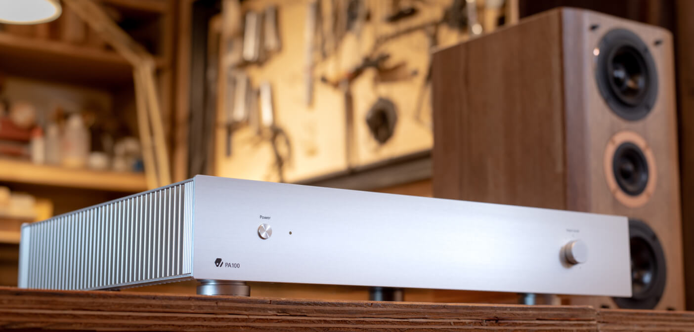 純A級動作範囲を1W@8Ωとし、低消費電力と低歪み率をバランスしました。アンプの利得を低めの16.6dB(6.74倍)としており、プリアンプ等の入力機器側からの音声信号伝送時にS/N比を向上させることができます。これは現代の機器(2.0Vrmsの出力レベル)との組み合わせおよび一般的な部屋での視聴に必要十分な仕様です。