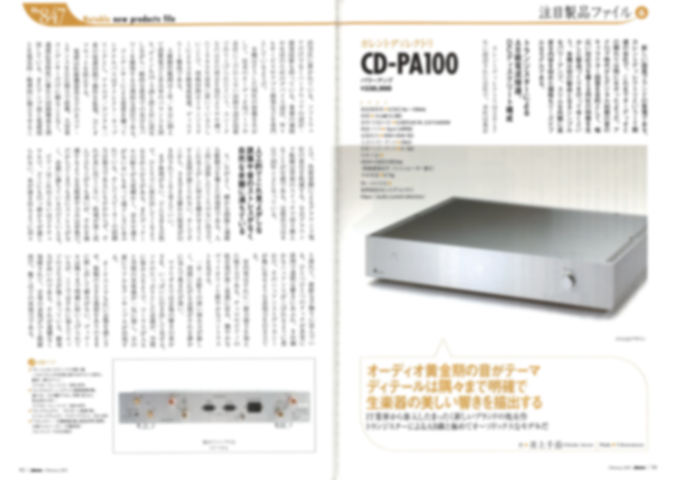 stereo誌(音楽之友社) にて、当社オーディオ製品 CD-PA100 の試聴レビュー記事を掲載いただきました。